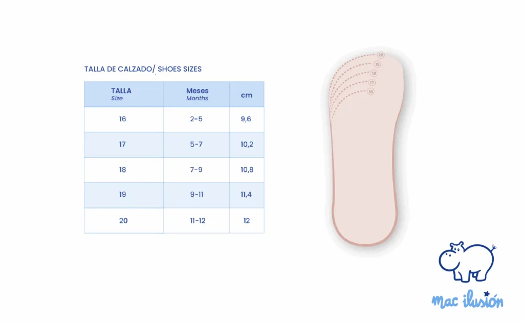 Mac Ilusión diseña y fabrica su ropa en España, siguiendo el tallaje europeo, pensado para adaptarse al ritmo de crecimiento de los bebés y niños pequeños.